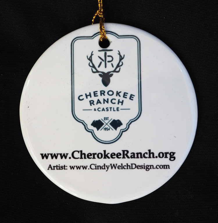3” Round, Porcelain, “Cherokee Castle” image printed in vibrant color on the front, Cherokee logo on the back.